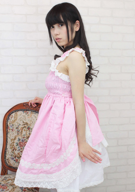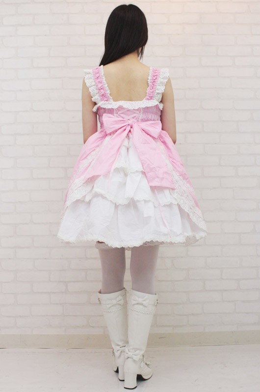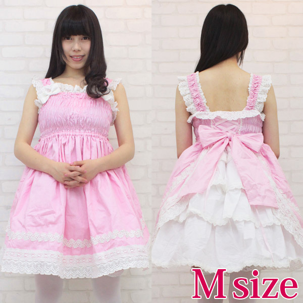 ![]() 甘ロリピンクが可愛い!豪華なフリルレースで仕上げたシャーリングジャンパースカート(M)。