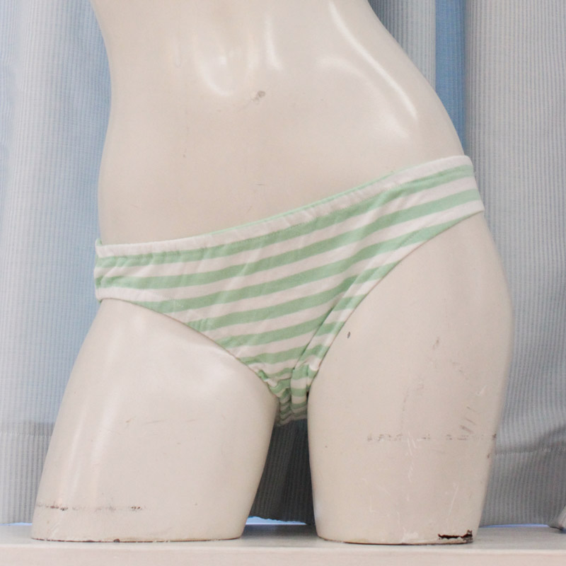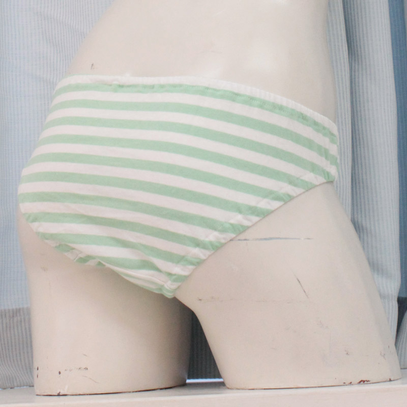 ![]() 絶大な人気を誇るグリーン×ホワイトのしまパンに、細めの中ボーダー柄が登場!細かいしましま柄がとってもラブリー!普段使いはもちろん、短め丈のコスチュームとあわせれば、見せパンとしてもバッチリ活躍してくれるな萌え系ショーツです。