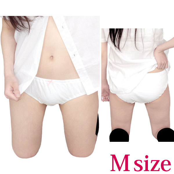 ![]() 真ん中に付いたピンクリボンがキュートな純白の綿パンツ(M)。