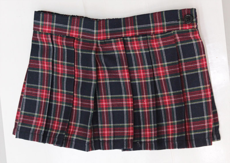 ![]() 本格的!紺と赤のチェックが可愛いプリーツスカート(M)。