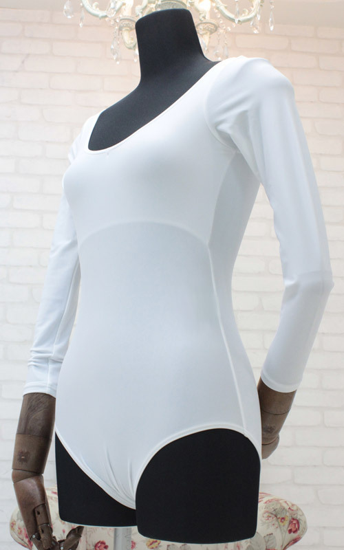 ![]() 体のラインをキレイに見せる、純白のロングスリーブレオタード(Mサイズ)。