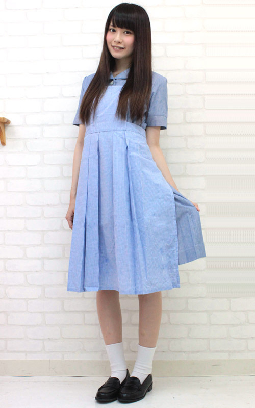 ![]() 落ち着いた水色のワンピースが清楚な印象!盛夏服タイプの制服コスプレ(Mサイズ)。