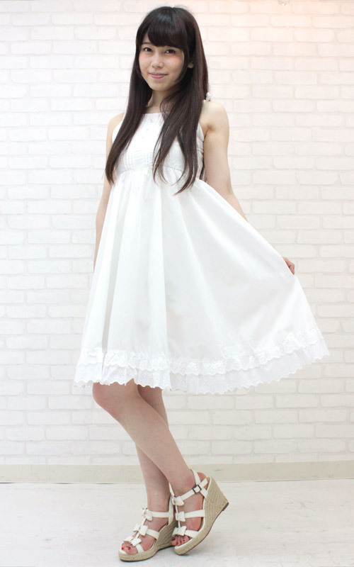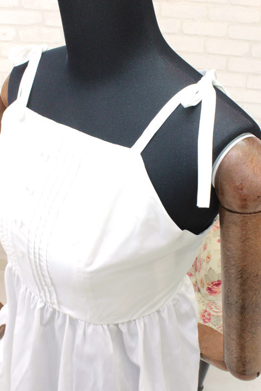 ピンタックやレース、背面のシャーリングなどで、お嬢様風にデコレートしたワンピースです。 リゾートや避暑地などのサマードレスとしても活躍するコスチュームです。 ※水洗い不可、塩素系漂白剤による漂白不可、アイロンは中温で当て布使用、ドライクリーニング可。 ※こちらの商品は在庫の状況によりお届けまでに4日〜7日程度かかる場合がございます。 ![]() 白![]() NH1023M![]() Mサイズ:B75〜95cm・W58〜90cm 丈:ワンピース(肩紐を抜き)85cm(肩紐前33cm、肩紐後50cm) セット内容:ワンピース単品(背面シャーリング入り、肩紐調節可能) ![]() [ BACK ]