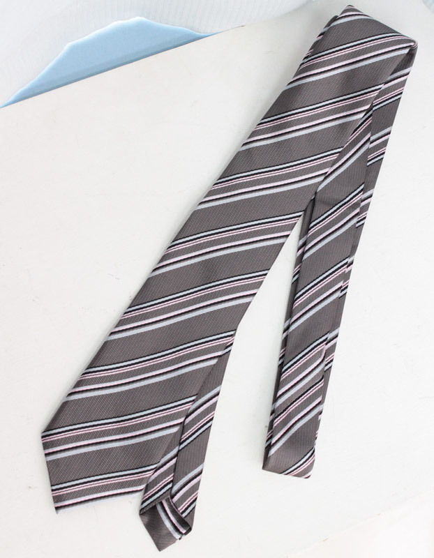 ![]() グレー地にピンクラインを施した、お洒落キュートなスクールネクタイ(単品)。