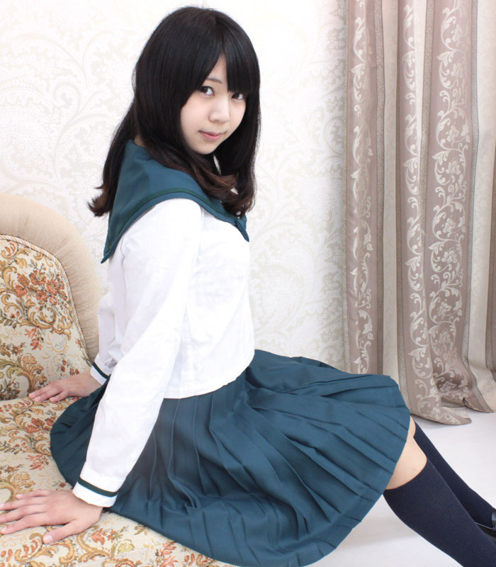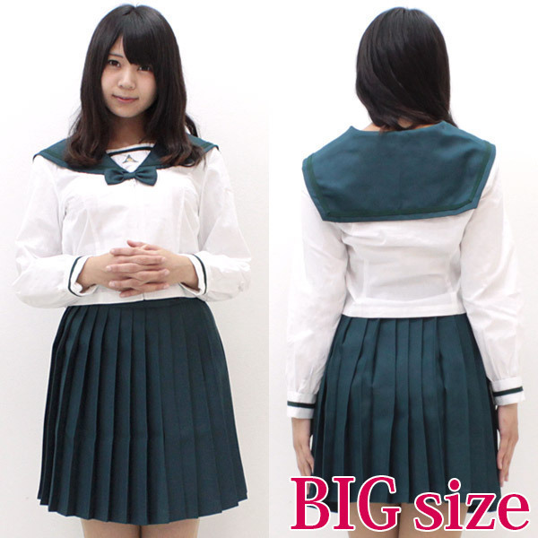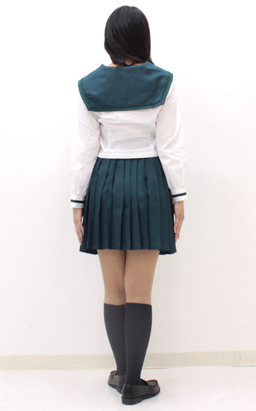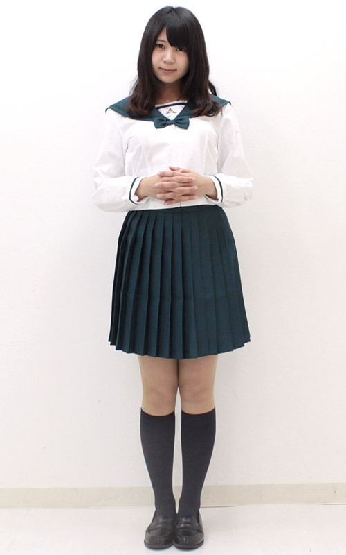 ![]() 黒でも紺でもない落ち着いた緑色が新鮮!白い部分とのコントラストが映えるセーラー服。