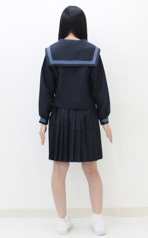 ![]() ブルーの3本ライン&スカーフが珍しい!濃紺に指し色が映える、長袖制服コスチューム(M)。
