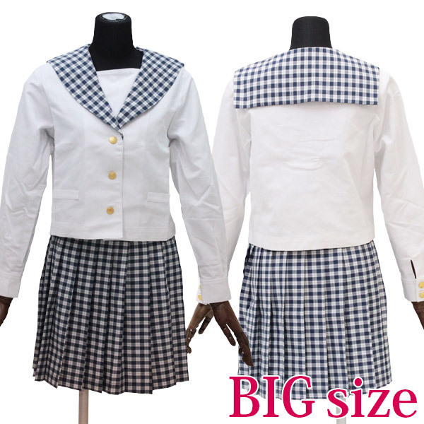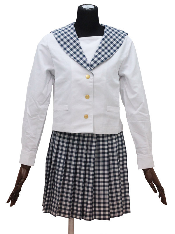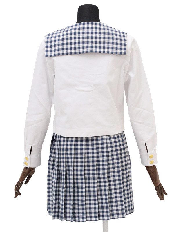 ![]() フロントと袖口の金ボタンがポイント!紺色ギンガムチェックのセーラー服コスプレ。