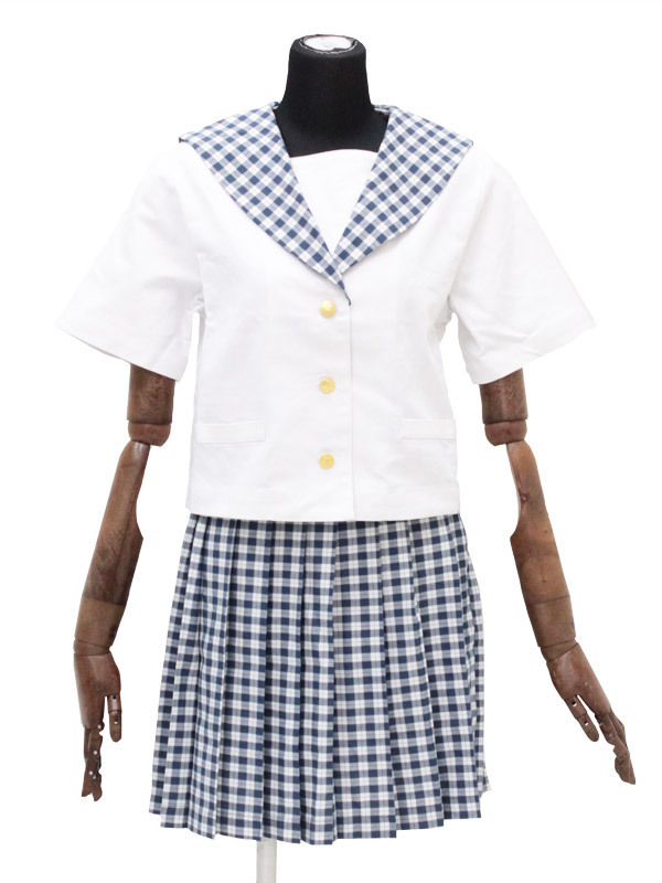 ![]() 白と紺のギンガムチェック柄がラブリー!私立学園に通うお嬢様風のセーラー服。
