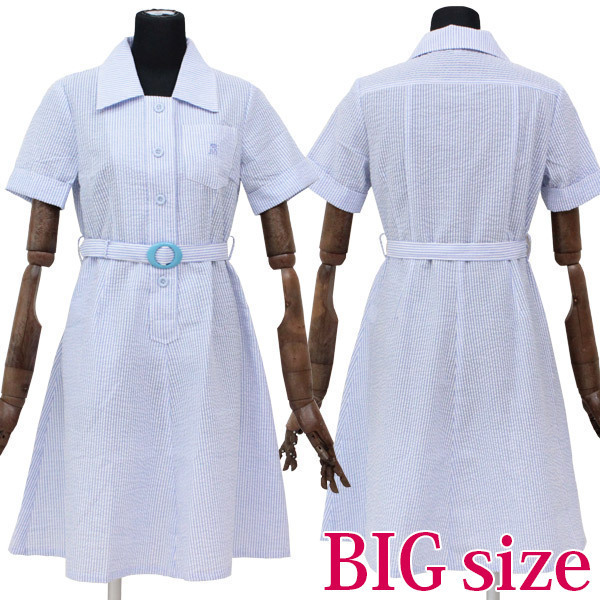 ![]() 水色×白の細ストライプ柄が好印象!涼しげで爽やかなワンピースタイプの制服コスプレ。
