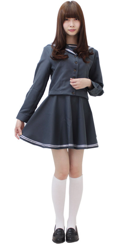 ![]() チャコールグレーに白のダブルラインが珍しい!有名学校の制服コスチューム。