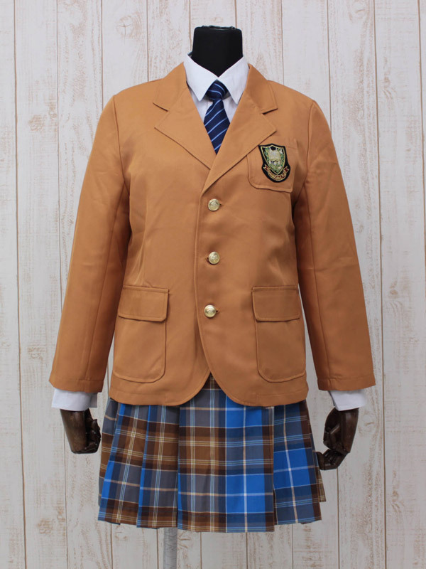 ![]() キャメル色ブレザーと青チェックスカートがクラシカルな冬服タイプの制服コスチューム。