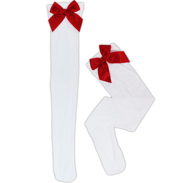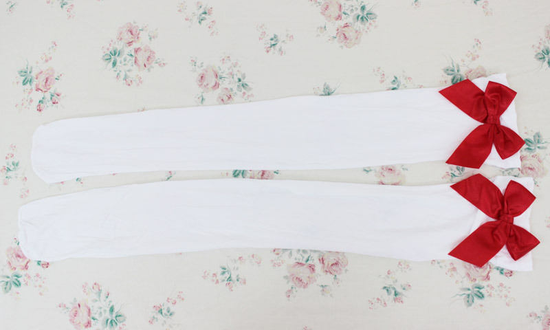 ![]() メイド服やアイドル衣装と相性バッチリな赤リボン付きニーハイソックス。