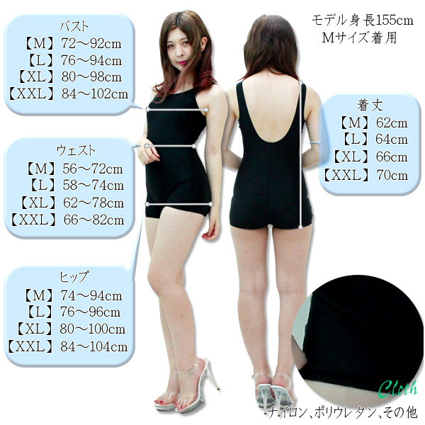 シックな大人の黒スク水!ズボンタイプなので気になる部分もカバー出来ちゃいます。 前身頃全面に裏地&胸部にパッドを付けたしっかり縫製の本格仕様で、夏のプールにも撮影の被写体用コスプレにもぴったりです。 ※液温30度洗濯可、漂白剤による漂白不可、アイロン・タンブル乾燥不可、ドライクリーニング不可。 ![]() --![]() NC3006M![]() Mサイズ:B72〜92cm・W56〜72cm・H74〜94cm 着丈62cm セット内容:水着単品(前身頃全面に裏地付き、胸部にパット付き) 素材:ナイロン、ポリウレタン、その他 ![]() [ BACK ]
