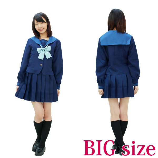 ![]() 学生らしいさわやかブルー系♪襟の色が特徴的な人気の旧冬服セーラー服(BIGサイズ)。