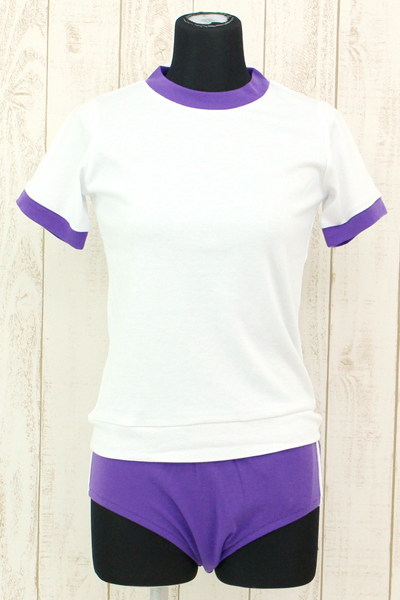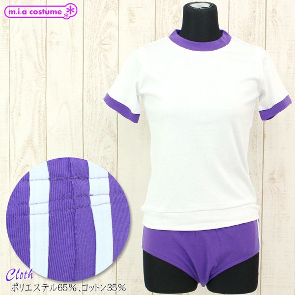 ![]() 濃いめの紫カラーのブルマに本格的な二本ラインを施した可愛い体操着コスプレ。