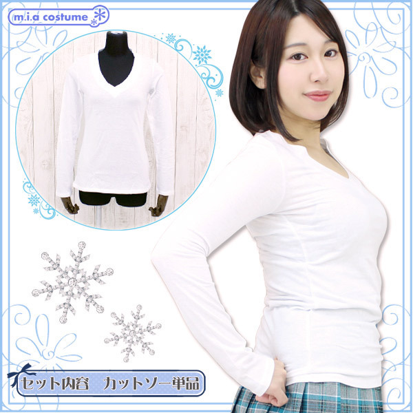 HOME > コスプレ衣装 > その他 > アメリカ製の高品質な綿100%レディースVネック長袖カットソー 白 Mサイズ