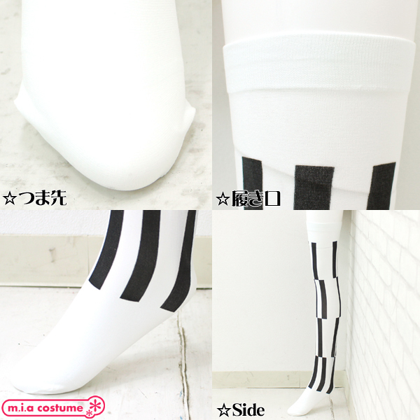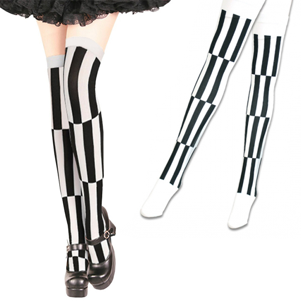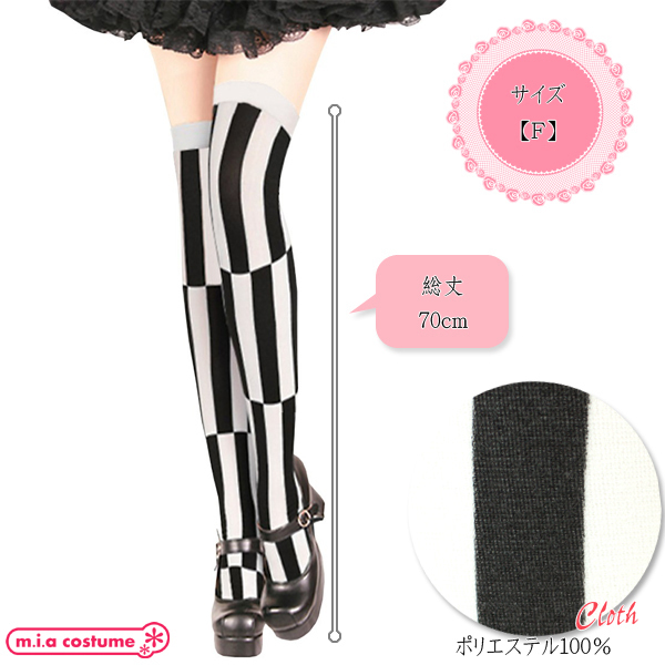 ![]() ゴシック&ロリータファッションと相性抜群!ブロック模様の白黒ストライプ柄ニーハイストッキング70cm。
