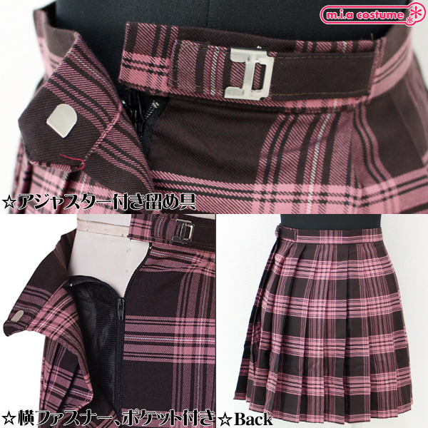 HOME > コスプレ衣装 > 小道具(ニーソックス・猫耳) > ポケット付きのチェック柄プリーツスカート単品 ピンク×ブラウン Mサイズ