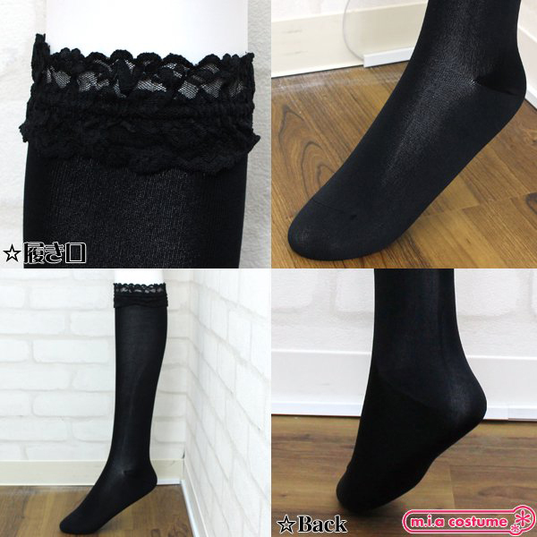 HOME > コスプレ衣装 > 小道具(ニーソックス・猫耳) > ソフトナイロンレース付ハイソックス 黒 無地 40cm丈 23〜25cm