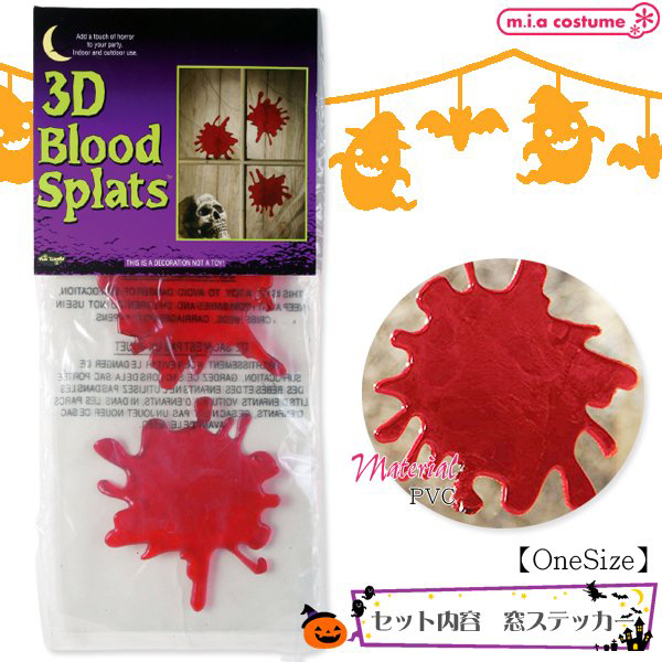 ![]() ハロウィンパーティやコスプレイベント、文化祭などで大活躍!血塗られた窓を手軽に再現できる「3D Blood splats(3枚入り)」。