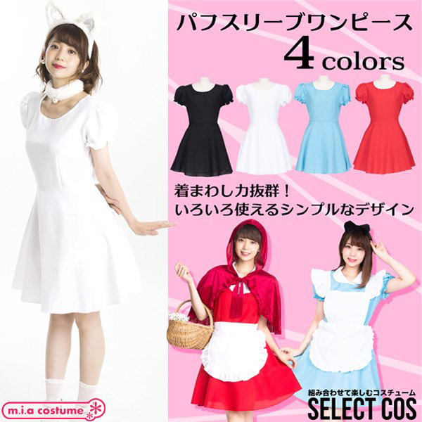 HOME > コスプレ衣装 > 小道具(ニーソックス・猫耳) > セレクトコス パフスリーブワンピース ホワイト