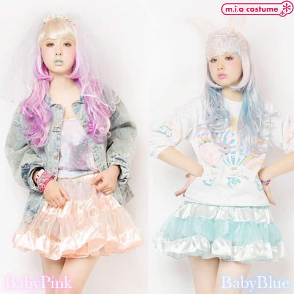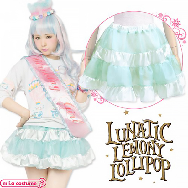 ![]() イベント用衣装やパーティーコスプレとしても良さげ♪原宿系カリスマモデル「AMO」がプロデュースする新ブランド「LUNATICLEMONYLOLLIPOP」からティアードスカート(ベビーブルー)が登場!サテンの光沢感とシースルー素材の組み合わせが可愛くて、重ねるボトムスで様々なコーディネイトが楽しめる逸品です。