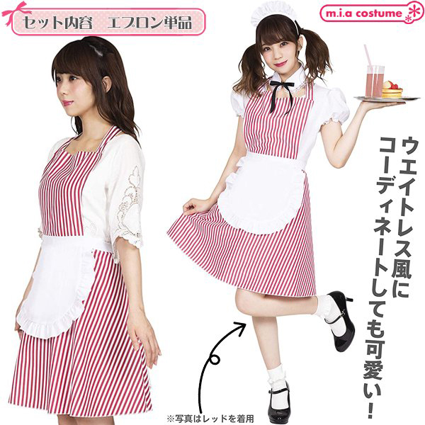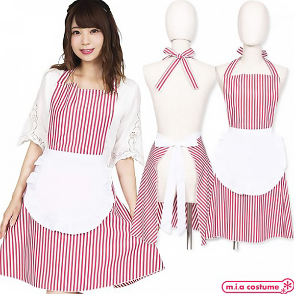 HOME > コスプレ衣装 > 小道具(ニーソックス・猫耳) > フリルストライプエプロン レッド