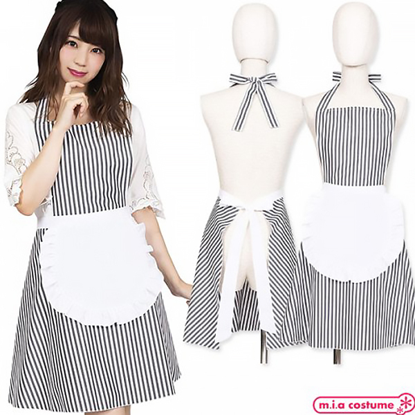 HOME > コスプレ衣装 > 小道具(ニーソックス・猫耳) > フリルストライプエプロン ブラック