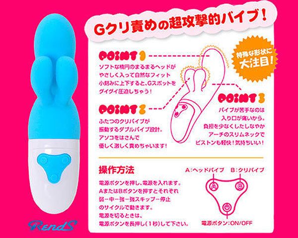 ●愛らしいフォルムで大人気だった前作のミニタイプ●しなやかに曲がるソフトボディ●最大径36mm程の楕円ヘッドがGスポットを的確に刺激●ダブル突起がクリトリスを挟み撃ち●ヘッドと突起部分は個別操作可能●AorBボタンで振動を操作●電源ON/OFFは1秒長押し。 前作より一回りほど小さくなって再登場!中が狭い女性でも楽しめるよう再設計されたスリムボディで、心身ともに癒されること間違いなしのコンパクトバイブです。 ![]() --![]() キューティー![]() パッケージ:23.0×7.5×7.5cm 本体:17.5×3.5cm 電池:単三電池×2本使用![]() [ BACK ]
