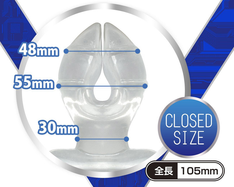 ●クリアカラーのハード素材採用●ずっしり重量級の圧迫感●最大幅:約5cm超(閉口時)・約9cm超(開口時)●二股形状で腸壁を押し広げながら刺激。 ノーマルよりも硬度が増したことにより、さらなる圧迫感を味わえるハードタイプ!破壊的で強烈な快感を求める上級者向けのアナルグッズです。 ![]() --![]() ハード![]() パッケージ:20.5×14.5×5.5cm 本体:全長10.5cm 閉じた状態の最大幅5.5cm![]() [ BACK ]