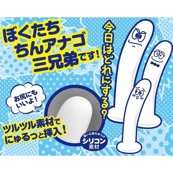 ![]() にゅるっと入れやすくて気持ちいい!シリコン素材のディルド三兄弟「ちんアナゴ」シリーズの長男バージョン。