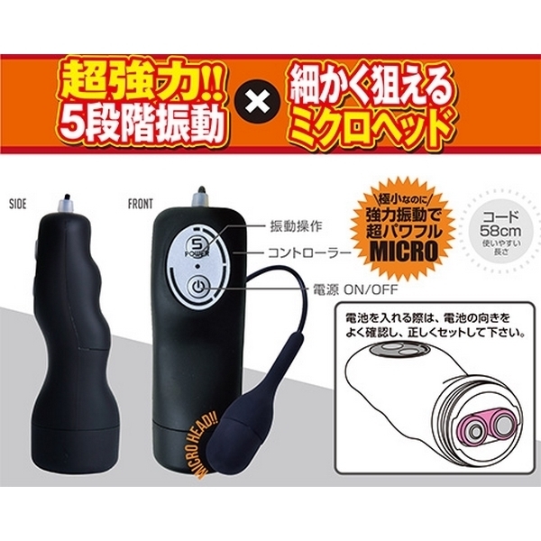 ●使い勝手の良さが人気のビブラル●お肌に優しいソフトシリコン加工●手の痺れを軽減するグリップ形状●長さ2.8×1.5cmの極小ヘッド●繊細な敏感部分をピンポイント刺激●握りやすい凹凸型コントローラー●超強力な五段階の振動機能を搭載●毎分15000回転もの「激」モード●コード長58cmで一人使い用にも◎●メンテナンスが簡単な生活防水。 極小サイズでもパワフルな激振動!ミクロヘッドタイプのビブラルローター。 当て・挿れともに便利な手持ち形状で前にも後ろにも大活躍です。 ![]() ブラック![]() ミクロ![]() パッケージ:16.5×8.5×3.5cm 本体:ローター2.8×1.5cm コード58cm 電池:単四電池×2本使用![]() [ BACK ]