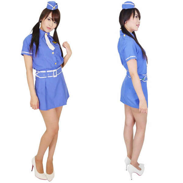 ![]() 近未来系のミニスカポリスに変身♪爽やかブルーのブラウス、ネクタイ、スカート、ベルト&キャップがセットになった警官コスプレセット。