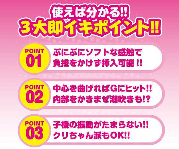 丸みのあるボディは純国産のソフト素材で負担を掛けずに挿入可能。 挿入部のサイズは約11.5cm、中心を曲げればGにヒット!内部をかき乱す回転で潮吹き体験も可能!さらに、クリトリス派にも嬉しい突起付きの強力振動クリバイブも装備しています。 ![]() ピンク![]() --