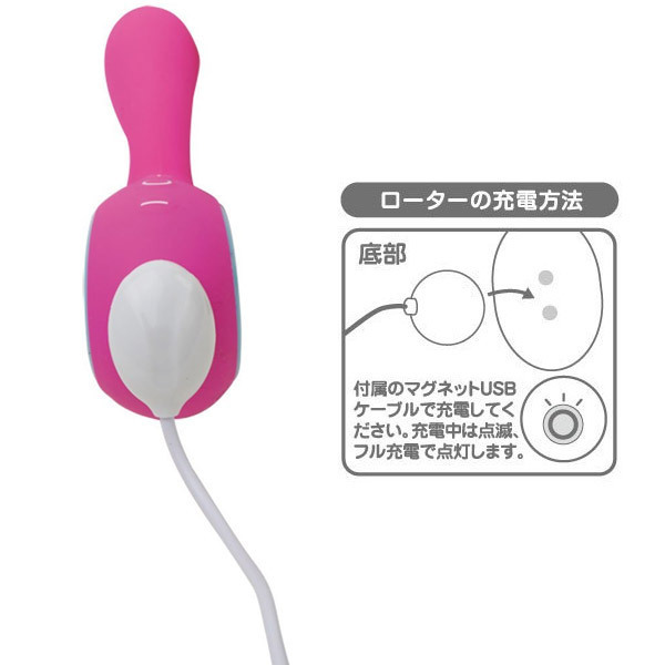 リング状の持ち手付きで扱いやすい二点責めバイブレーター。 10種類の振動パターン&振動強弱8段階の調整が可能!静音タイプながら弱振動から強振動まで80パターンを搭載。 生活防水設計なのでローションたっぷりでも使えます。 電源はマグネットタイプのUSB充電式を採用!使用環境により変化する場合がございますが、約2時間のフル充電で約60分〜90分使用可能です。 ![]() --![]() --