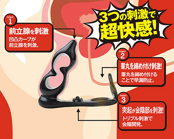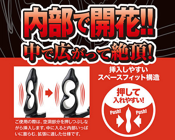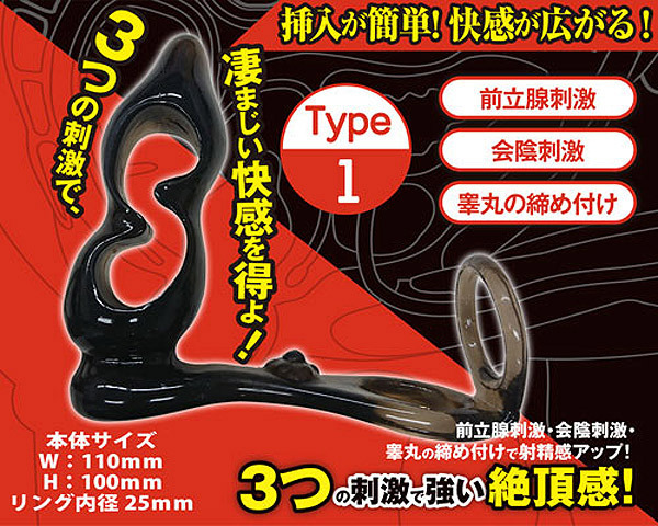 中央の空洞部分を押しつぶして細身にすることで挿入しやすく、挿入後は内部いっぱいに膨らむ『スペースフィット』構造を採用。 プラグの凸凹カーブが前立腺を、リングが睾丸を、突起が会陰部を刺激する3点責めの超快感アナルグッズです。 ![]() --![]() Type1![]() パッケージ:14.0×15.0×4.5cm 本体:10.0×11.0cm・リング内径2.5cm![]() [ BACK ]