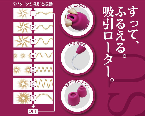 ![]() すって、ふるえて、おるがずむ♪乳首もクリも逃さずフィットする、2タイプのアタッチメントが付属した吸引ローター「すぅ」。