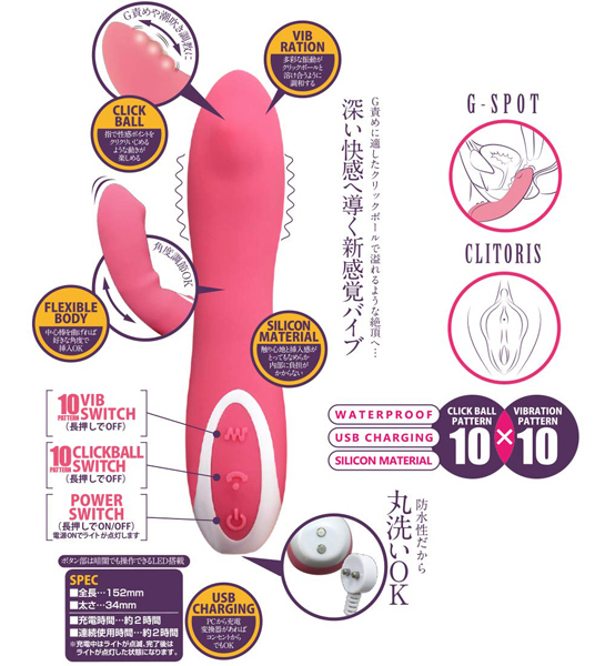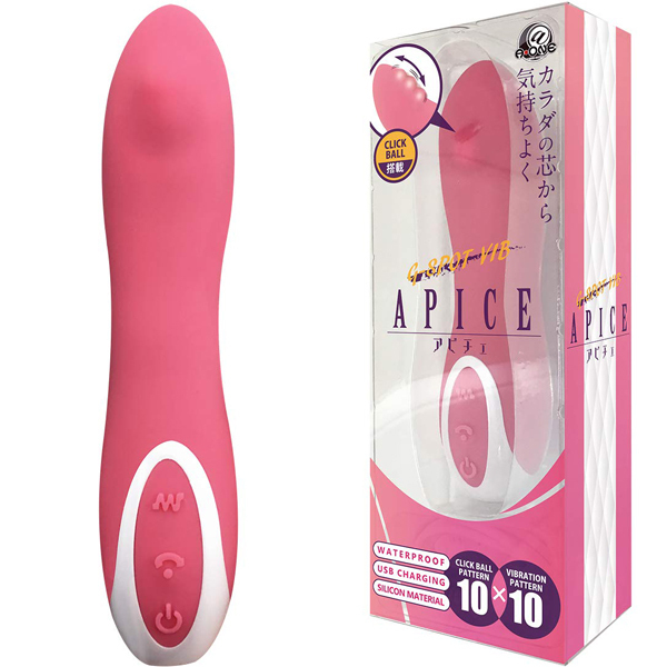 先端に搭載されたクリックボールがあなたを深い快感へ導く。 カラダの芯から気持ちよくなろう。 先端のクリックボールが深い快感へ導くバイブ『アピチェ』指で性感ポイントをクリクリいじめる動きが楽しめる。 10種の多彩な振動パターンが、クリックボールと調和する。 中心部を曲げれば好きな角度で刺激可能。 触り心地と挿入感がとってもなめらかで内部に負担がかからない。 生活防水、シリコン製。 2時間の充電で約2時間の連続使用可能 ※使用状況や環境により時間が変わる場合があります。 ![]() --![]() --