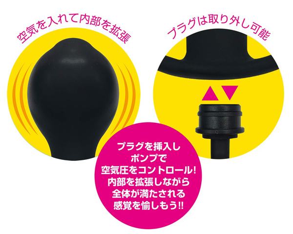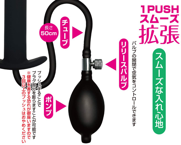 プラグを挿入しポンプで空気圧をコントロール!プラグは取り外せるので丸洗いも可能。 ライトタイプは無理なくスムーズに挿入できる形状で内部を拡張しながら全体が満たされる感覚を愉しもう!●丸洗いOK●滑らかな挿入感 ※健康を害する恐れが御座いますので3回以上のプッシュはおやめください。 ![]() --![]() Light(ライト)![]() パッケージ:17.5×15.5×4.7cm 本体:10.5×2.8cm・チューブ50cm![]() [ BACK ]