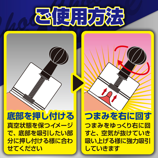 つまみをくるくる回すだけという簡単な使用方法で、乳首をギュインギュインと吸っていきます。 真空状態を保つイメージで底部を吸引したい部分に押し当て、つまみをゆっくり右に回すことで強力吸引!皮膚にしっかりと密着するように、ローションなどを使うとさらに快感度もアップ!乳首だけでなく、アイデア次第でいろんな吸引調教を楽しんで♪サイズ違い、AとBの2タイプ同時発売! ![]() --![]() B![]() パッケージ:20.0×11.0×6.3cm 本体:内径4.9cm・外径6.3cm![]() [ BACK ]