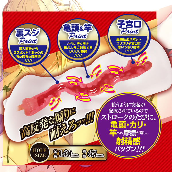 カリに直撃!抗うように配置された高反発な煽りに耐えて突きススメッ!【裏スジポイント】…挿入直後からGスポットギミックのちゅぽちゅぽ圧迫【亀頭&竿ポイント】。 さらに行く手を阻むように刺激するゾリゾリ隆起【子宮口ポイント】。 最終圧迫スポット・コリコリ子宮口に思いっきり射精さぁ、カリを鍛えて次の対戦までに備えよっ!・非貫通・純国産・ローション付属 ![]() --![]() --