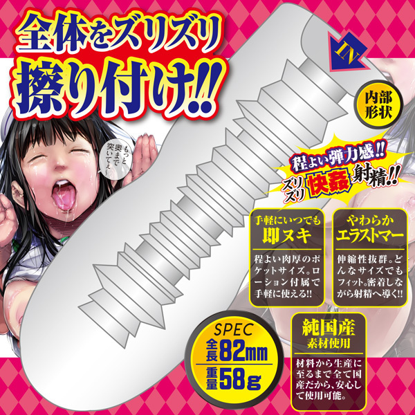 ![]() 性欲女子とサクッとひとヌキ!エーワン×尾髭丹が送る最強ミニオナホシリーズ!肉ヒダ突起の連続で射精感をグングン高めてくれるミニサイズの非貫通オナホール!全体をズリズリ擦り付け、鋭利な凹凸が射精へ導く!程よい肉厚のポケットサイズの、ローション付属なので手軽に使える!更に材料から生産に至るまですべて国産で安心。