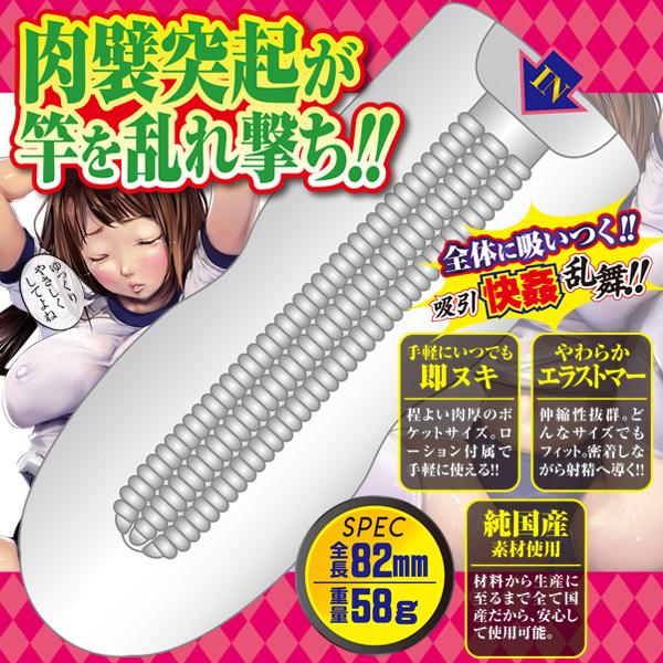 ![]() 性欲女子とサクッとひとヌキ!エーワン×尾髭丹が送る最強ミニオナホシリーズ!肉ヒダ突起の連続で射精感をグングン高めてくれるミニサイズの非貫通オナホール!肉襞突起が、サオを乱れ撃ち、ゾリゾリ感が心地いい!程よい肉厚のポケットサイズの、ローション付属なので手軽に使える!更に材料から生産に至るまですべて国産で安心。