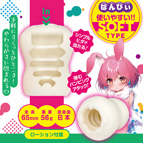 使い方は簡単。 本体にローションを塗り、あなたの先端に被せ、あとはぐるぐるもみもみ自由にシゴくだけ。 こきっぽ!本体を突き刺すようにひっぱれば、通常のハンドホールと同じように使用することも出来ちゃう。 短い時間でサクッとひとコキ。 こきっぽ!で、充実した性活を送ろう。 <内部形状>シンプルヒダが、あなたの先端に当たる!弾むように配置されたヒダが、バンピングアタック!・ミニオナホ・非貫通・ミニローション付属 ![]() --![]() ばんぴぃ![]() 非貫通型 パッケージ:10.0×5.0×5.0cm 本体:全長6.5cm 素材:TPE 重量:56g 原産国:日本![]() [ BACK ]