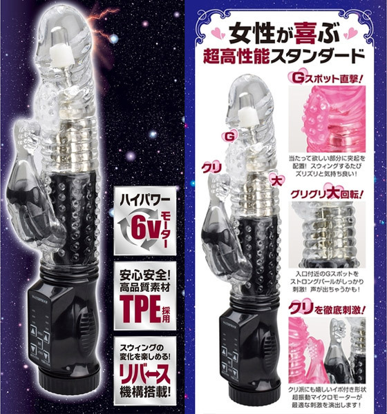 安心の高品質TPE素材でもちろんストレス臭カット!ハイパワー6Vモーターから繰り出す強力スイングとパール大回転で、Gスポットを含めた膣中を徹底刺激!超振動マイクロモーター搭載のクリバイブはこだわり抜いた突起付き形状。 スイングパターンは5種、クリバイブ振動パターンは12種!使いやすいIC搭載の新型バイブレーター。 衛生的に使える生活防水、そしてプレイの邪魔をしない静音設計です。 動作確認用の単四電池×4本も付属しています。 ![]() ブラック![]() --