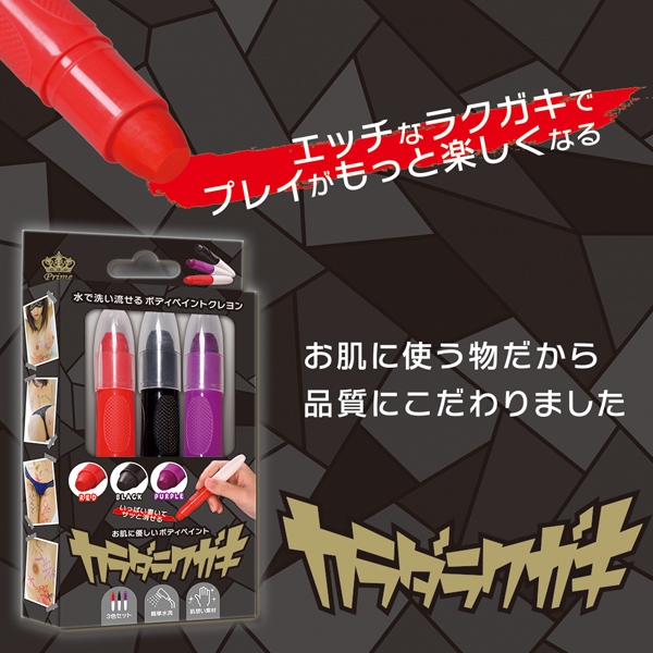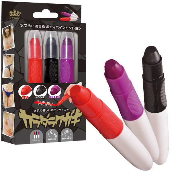 ![]() 卑猥な言葉を全身に落書き!仮装用にも使えるボディペイント用クレヨン赤黒紫の3色セット。