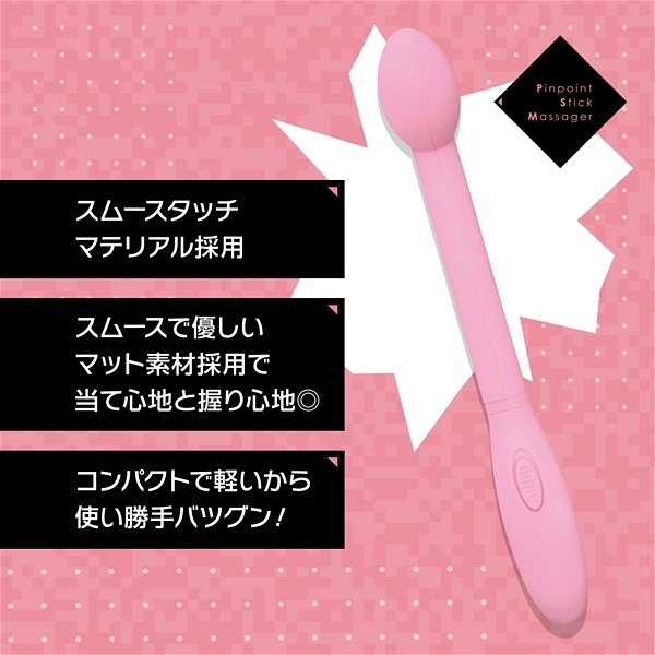 こちらは女性に人気のピンクカラーで、気持ちいい部分を優しく振動責めできる超軽量なバイブスティックです♪スマート形状で握りやすく、コンパクトで使い勝手の良い女性のセルフプレジャーアイテム!持ちやすくて軽いので、普段のセルフ使いに大活躍すること間違いなしです♪電源は単4電池1本となります。 ![]() ピンク![]() --