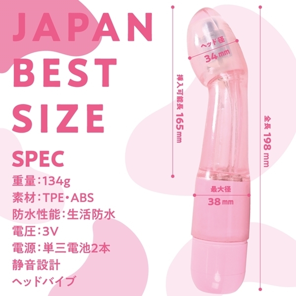 ![]() パッケージ:22.9×6.8×4.5cm 本体:全長19.8cm・挿入可能長16.5cm・ヘッド径3.4cm・最大径3.8cm 重量:134g 電池:単三電池×2本使用![]() [ BACK ]