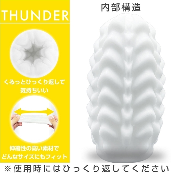 稲妻のような突起が重なる連続刺激構造。 コンパクトで持ち歩きに便利なミニホール。 THUNDERは一直線に連続した突起がまるで稲妻のように重なり合う刺激を生む波状構造。 加えて小さな突起がアクセントになり大突起の存在感を際立たせます。 さらに耐久性も高く、繰り返し使用可能。 容器はホールを立てられるタイプなので、洗ってからの乾燥や保管にも便利です。 ![]() --![]() 6 THUDER![]() 非貫通型 パッケージ:10.0×5.5cm 本体:9.0×5.0cm 重量:55g![]() [ BACK ]