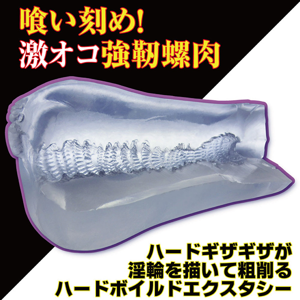 がっちりした硬弾力にハード素材とのコンビネーションがバッチリな極螺旋構造!半透明なクリアっぽいボディにド派手な刺激系の内部構造。 螺旋状に配置されたハードギザギザが淫輪を描いて粗削るハードボイルドなエクスタシー!甘いゾリ感じゃ納得できない方向けの攻撃的なギミックが、カリを徹底的に責めたて快感へと誘います♪一般的なゾリ感のオナホに飽きたならぜひどうぞ!ただの螺旋とは雲泥の差があるHARD刺激で飛びイキ必至です♪ ![]() --![]() --